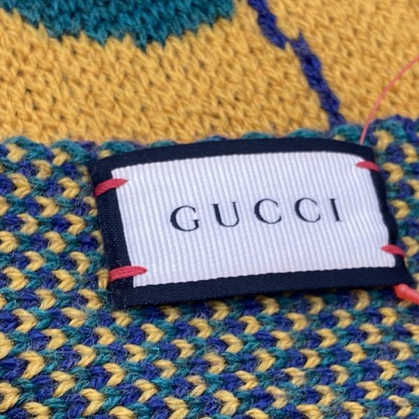グッチ GUCCI テディベア柄 ニットマフラー ストール クマ柄 ファッションアイテム ネイビー 黄色 イエロー ウール レディース 5 E 192