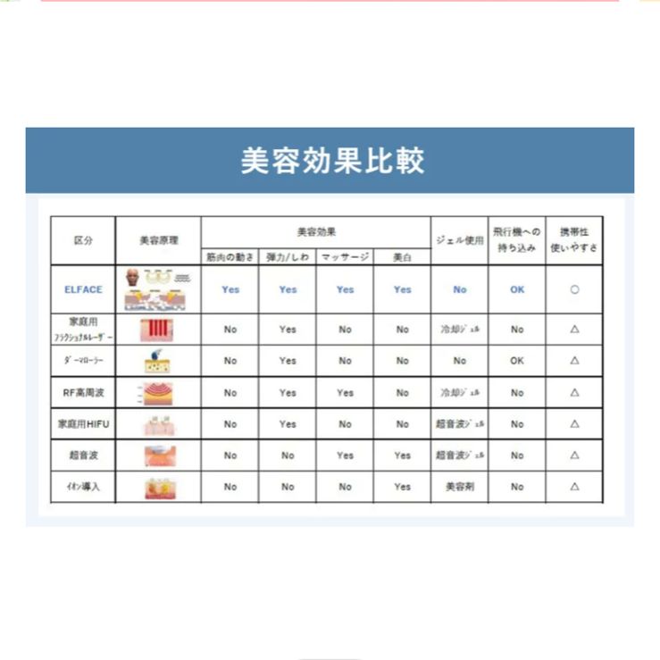 エルフェイスは高出力のため出力を補うジェルは不要。お化粧の上からでもご使用いただけます。