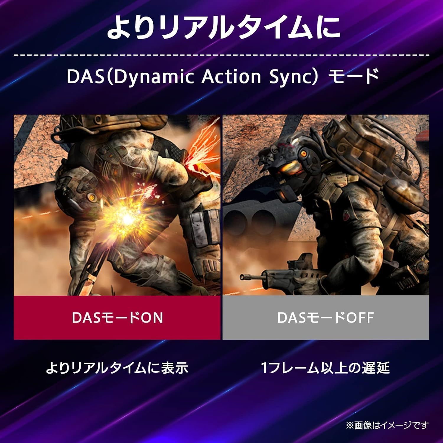 ゲーミング機能:可変リフレッシュレート(AMD FreeSync テクノロジー、VESA Adaptive-Sync)、DAS Mode、ブラックスタビライザー、クロスヘア、FPSカウンター