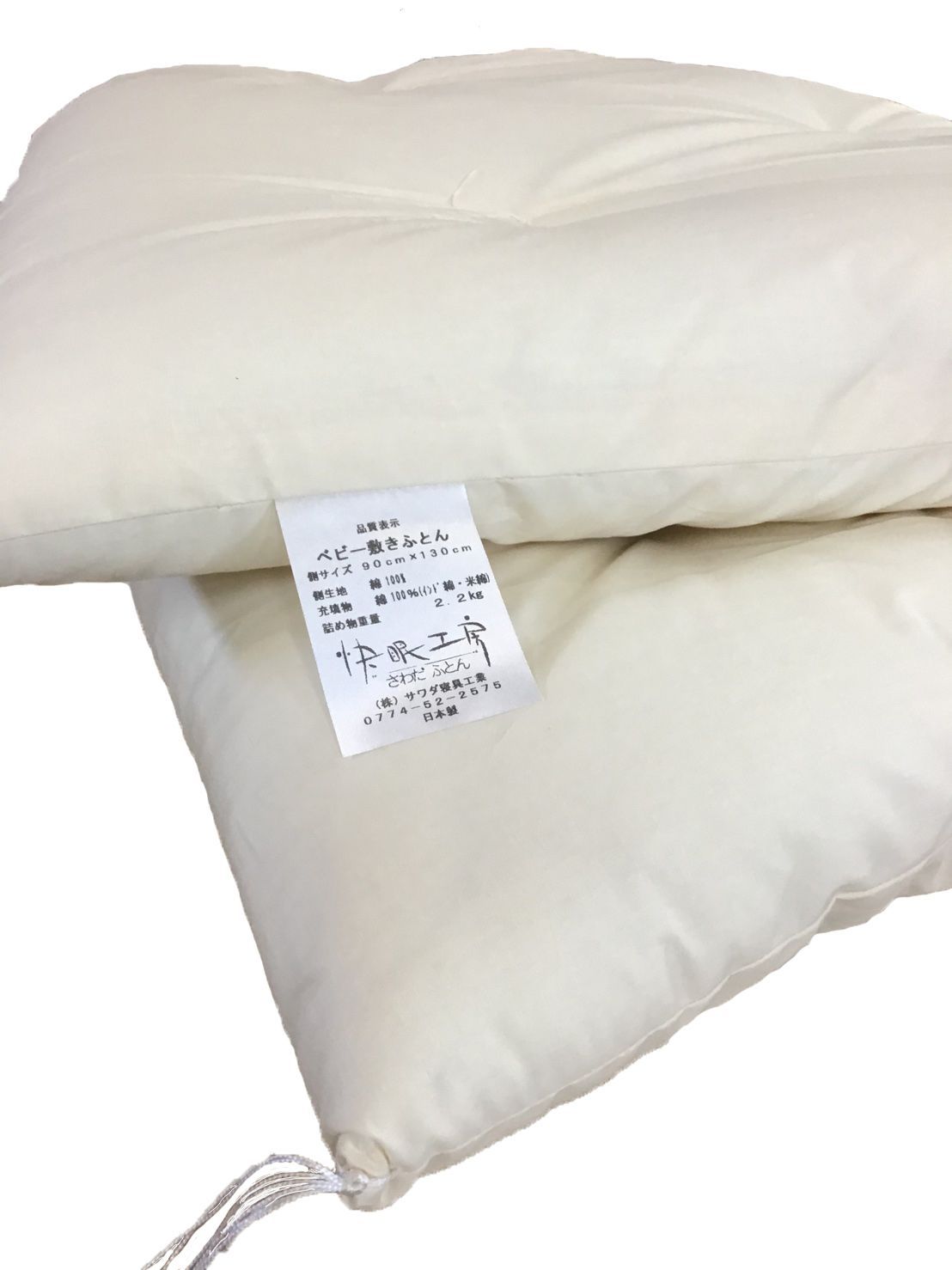敷布団の中綿には、米綿(より上質な綿)を使用し、繊維がしっかり絡み合ってお布団にも厚さを出し、寝ている赤ちゃんをしっかりと支えてくれます。