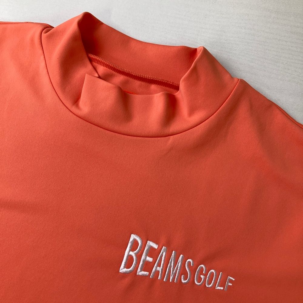 サイズ XL BEAMS GOLF ビームスゴルフ ハイネック 半袖Tシャツ ロゴ刺繍 オレンジ系 ゴルフウェア メンズ ストスト