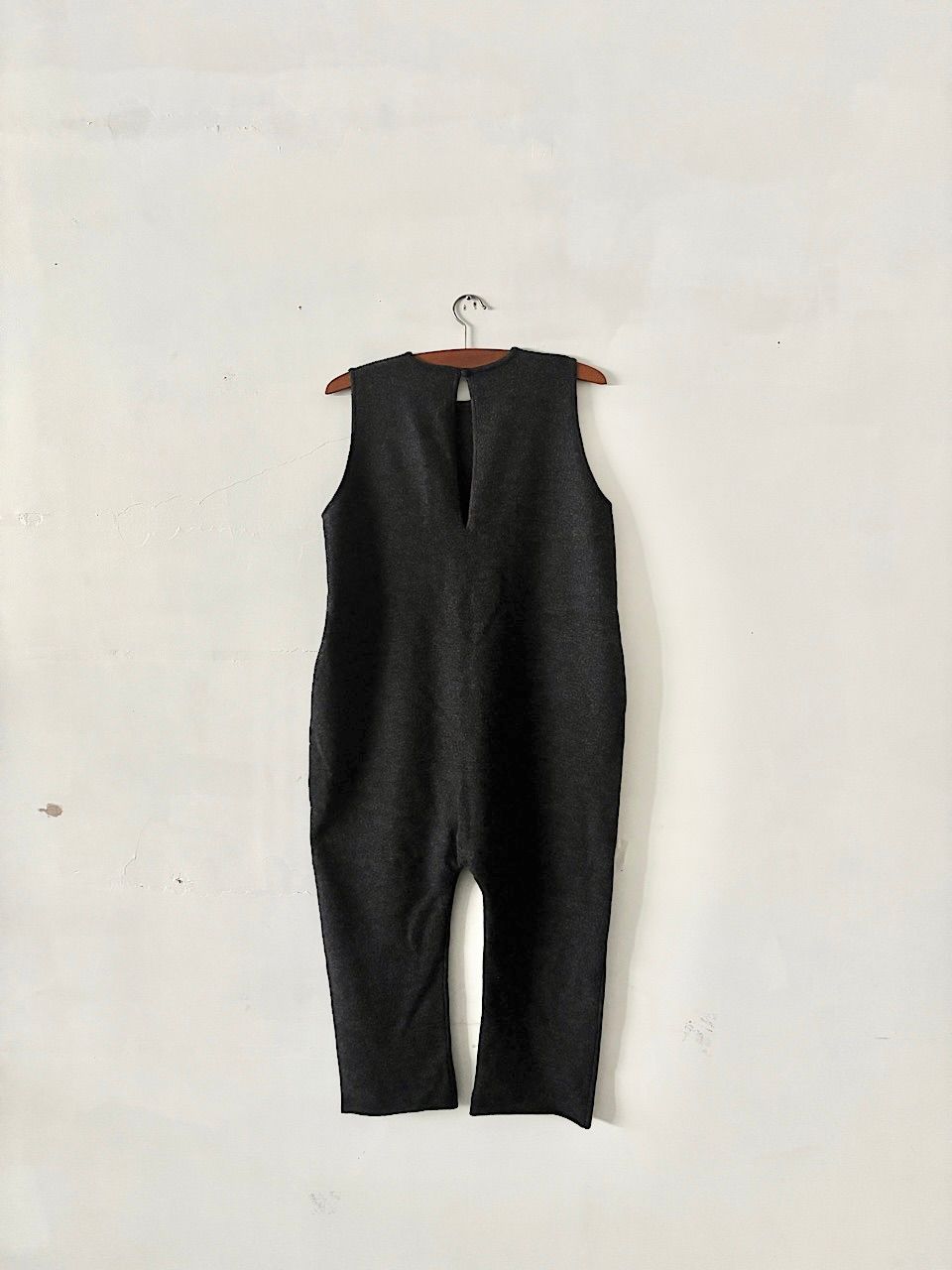 カラーはグレーで薄手ながら、温かくて軽く日常使いしやすいサロペットです。