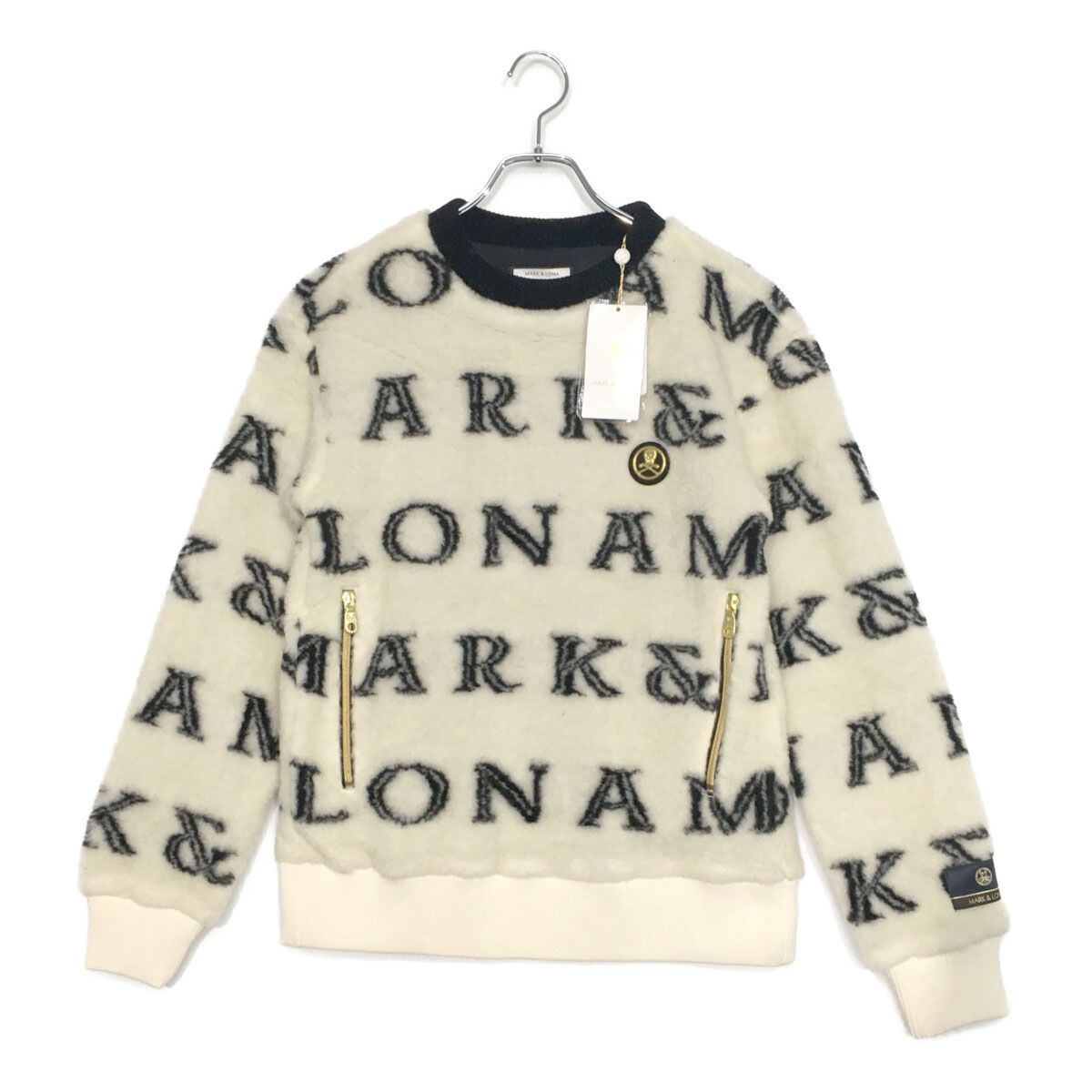 メンズ マークアンドロナ MARK-LONA スニードジャック 44 S 白 ホワイト 長袖 ボア ロゴ総柄 裏地付き