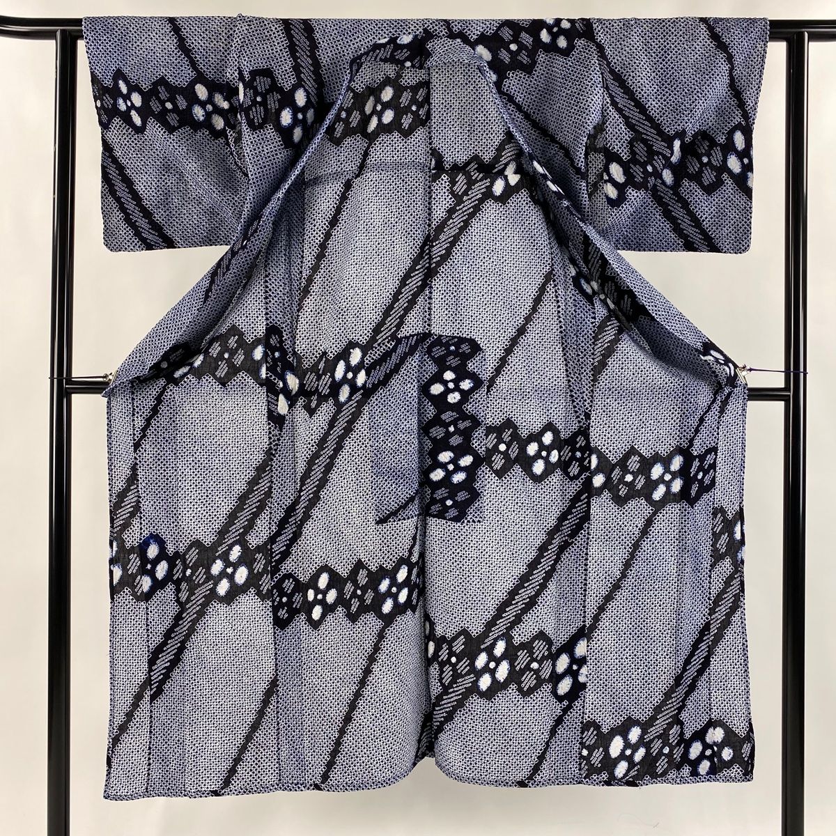 浴衣 身丈142 cm 裄丈60.5 S 花 幾何学 総絞り 紺色 綿