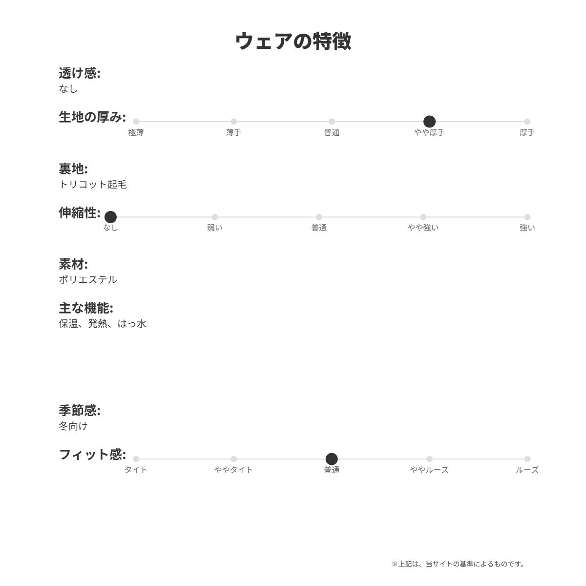 Mサイズ : 身長167-173、胸囲89-95、ウエスト75-81