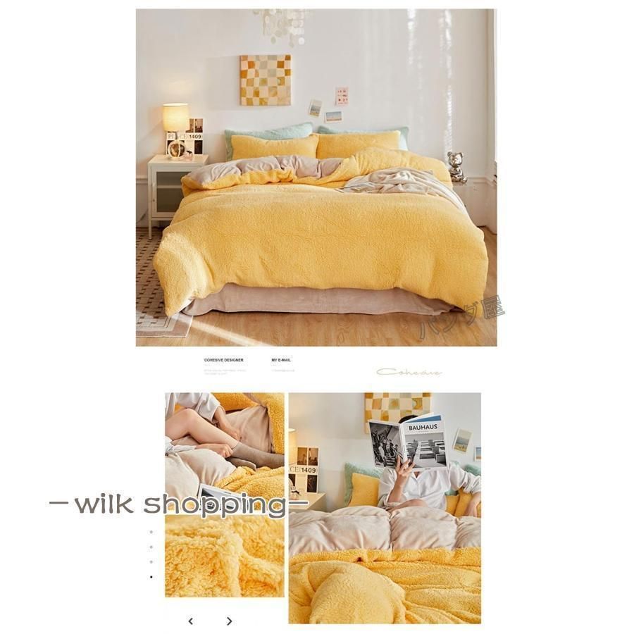 掛け布団カバー 4点セット ワイドダブル あったか もこもこ シープ調ボア マイクロファイバー フランネル ふとんカバー ベッドシーツ 枕カバー 200 cm×230 cm