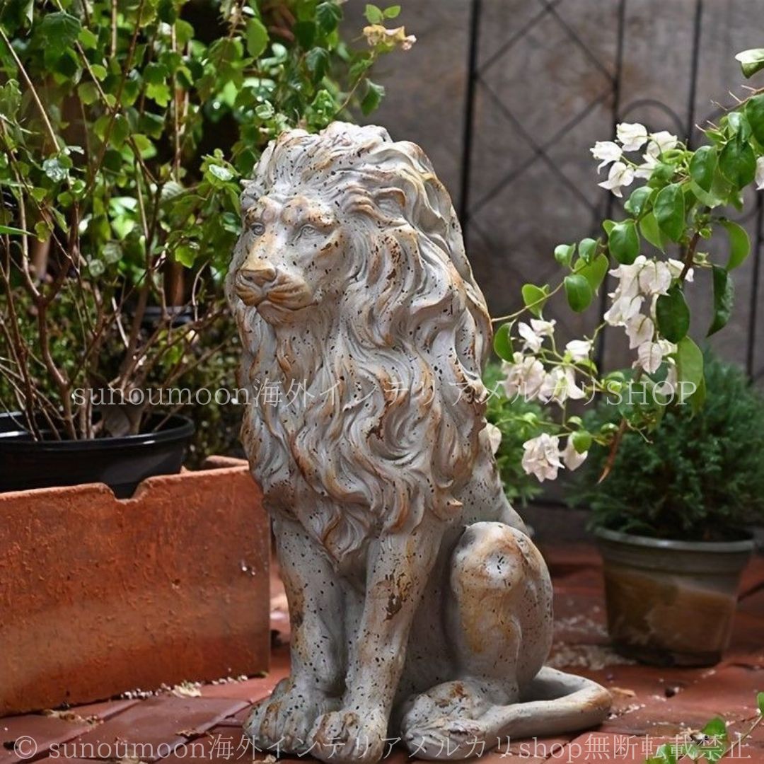 置物 オブジェ ガーデンオーナメント ライオン ヴィンテージ調 おしゃれ 動物 アニマル ガーデン ガーデニング 庭 玄関 テラス 4-7