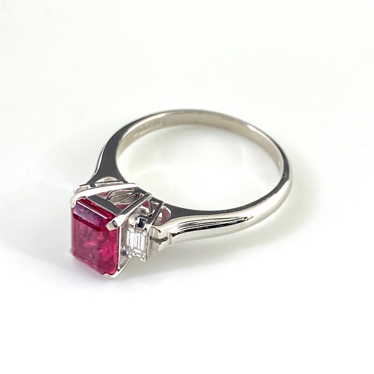 【素材】Pt900、ダイヤモンド、レッドトルマリン【実寸サイズ】約13号