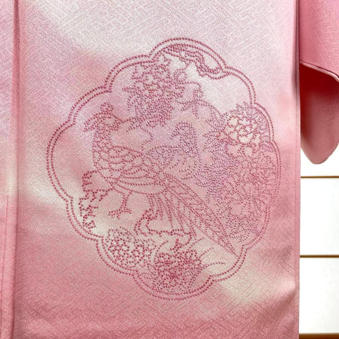 付下げ着物 正絹 刺繍 霞 華紋花鳥 桃色のグラデーション 着物 kimonolove リユース品 オゾン消臭サービス A-0859