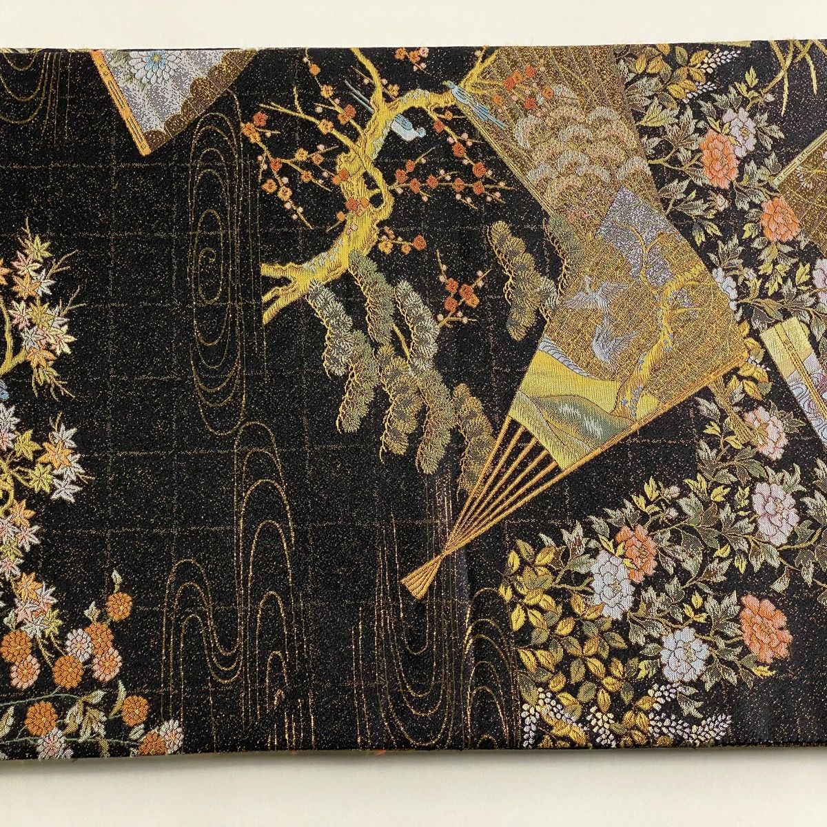 丸帯 桃山百双屏風文 橋 金糸 箔 墨色 お太鼓柄 正絹