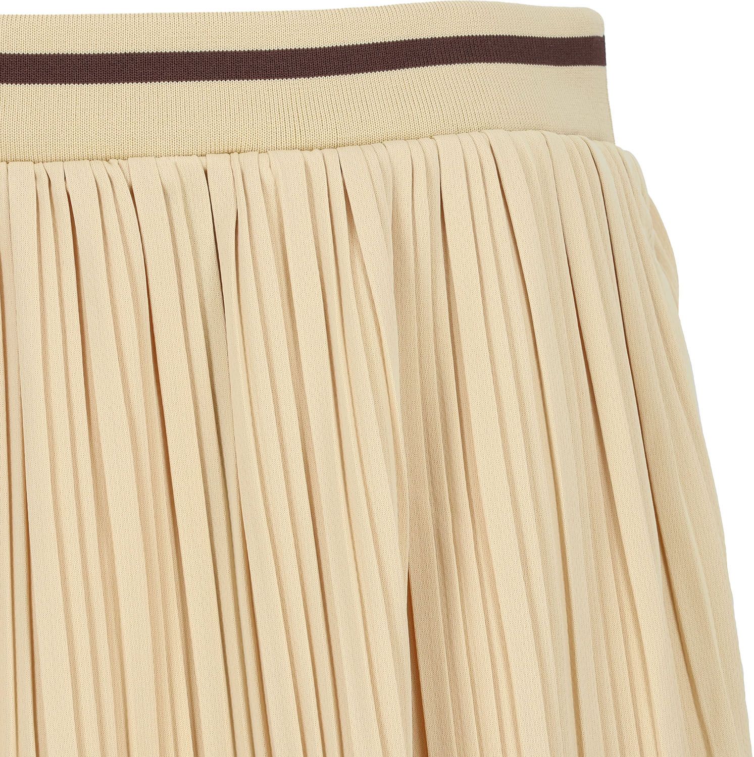 スッキリとした台形スコートも変形プリーツ加工することで、おしゃれ度アップ。プリント柄のシャツや無地同士でもワンランク上の着こなしになります。