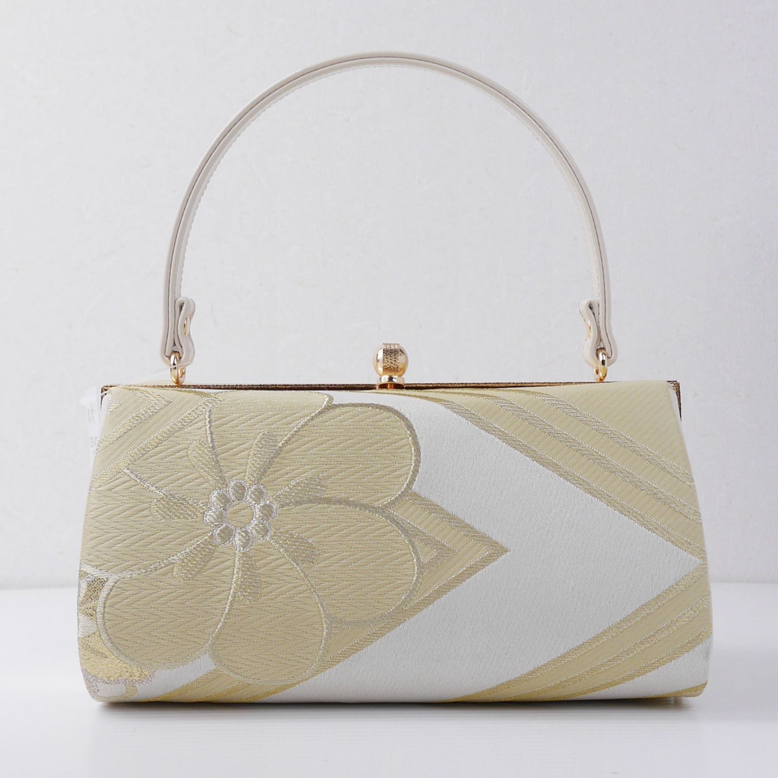 草履バックセット 白 ホワイト 金 ゴールド ねじり梅 くすみ 芯 成人式 卒業式 ゾーリバック 帯地 厚底草履 U 94-4