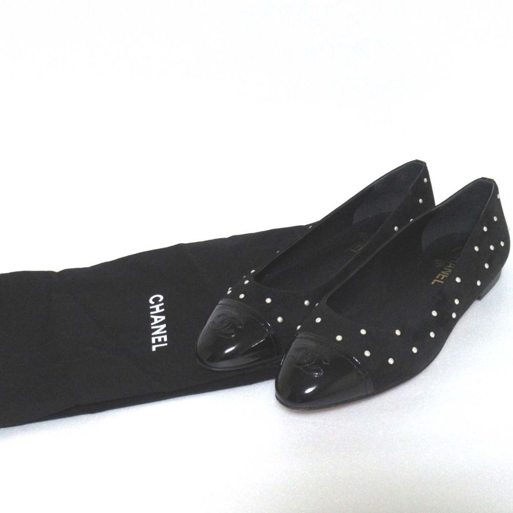 【商品名】CHANEL シャネル ココマーク パール装飾 スエード×パテントレザー フラットパンプス G33424 サイズ40C 約25.5cm ブラック