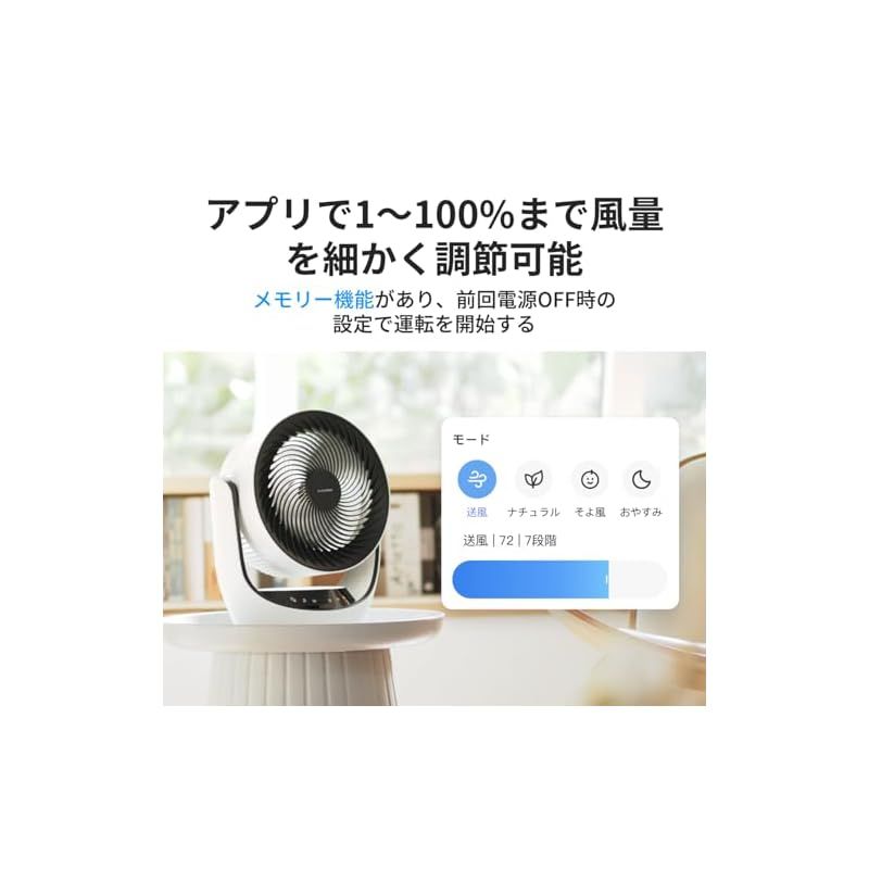 【1~100%まで風量を細かく調節&メモリー機能】アプリで風量を100レベルまで自由自在に調節可能。また、メモリー機能が搭載されており、前回電源OFF時の設定で運転を開始します。