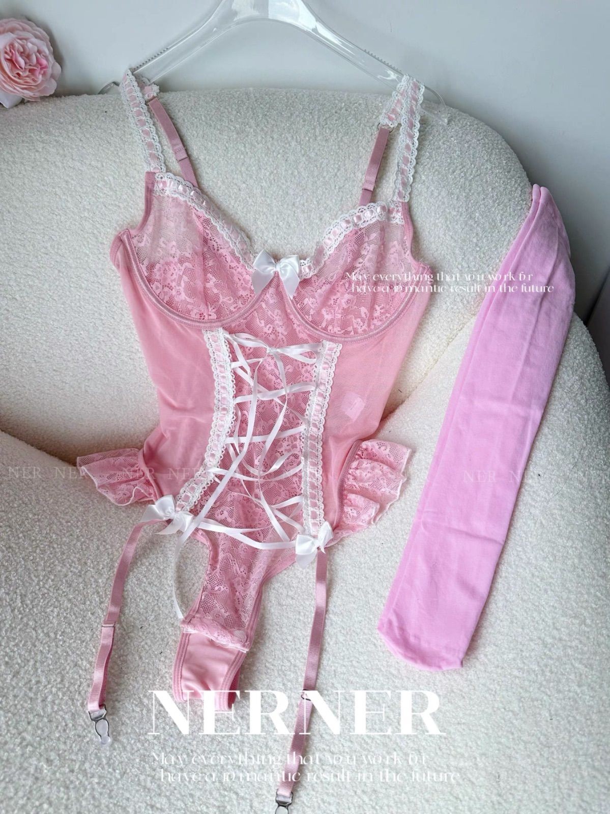 やわらかレース ピュアセクシー バストアップ. こだわりポン.ランジェリー.ワンピースタイプ ピンク