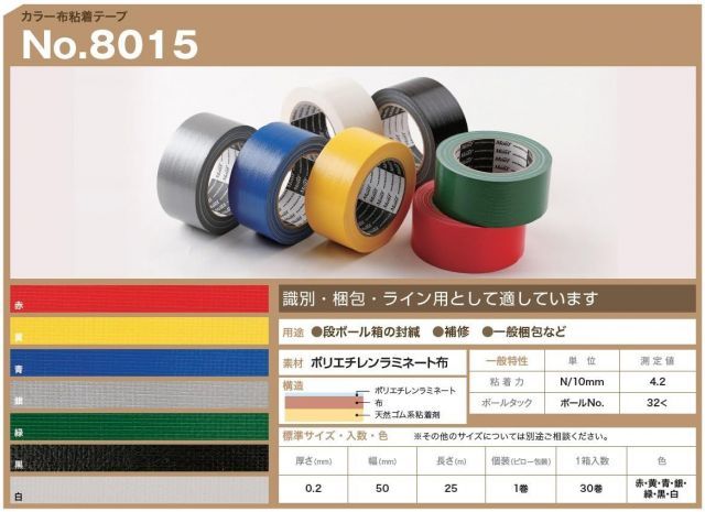 スタイル:30巻入り◆商品名:古藤工業MonfNo.8015カラー布粘着テープ白厚0.2mm×幅50mm×長さ25m30巻入り