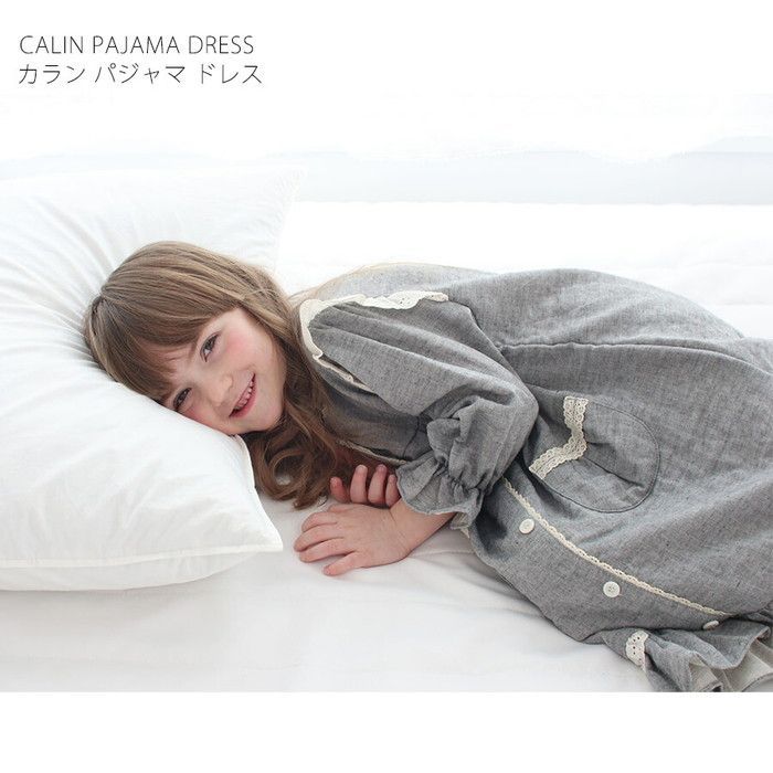 ナチュラルなグレー地に生成り色のレースのエレガントさが素敵な雰囲気を演出する、綿100女の子パジャマワンピースです。
