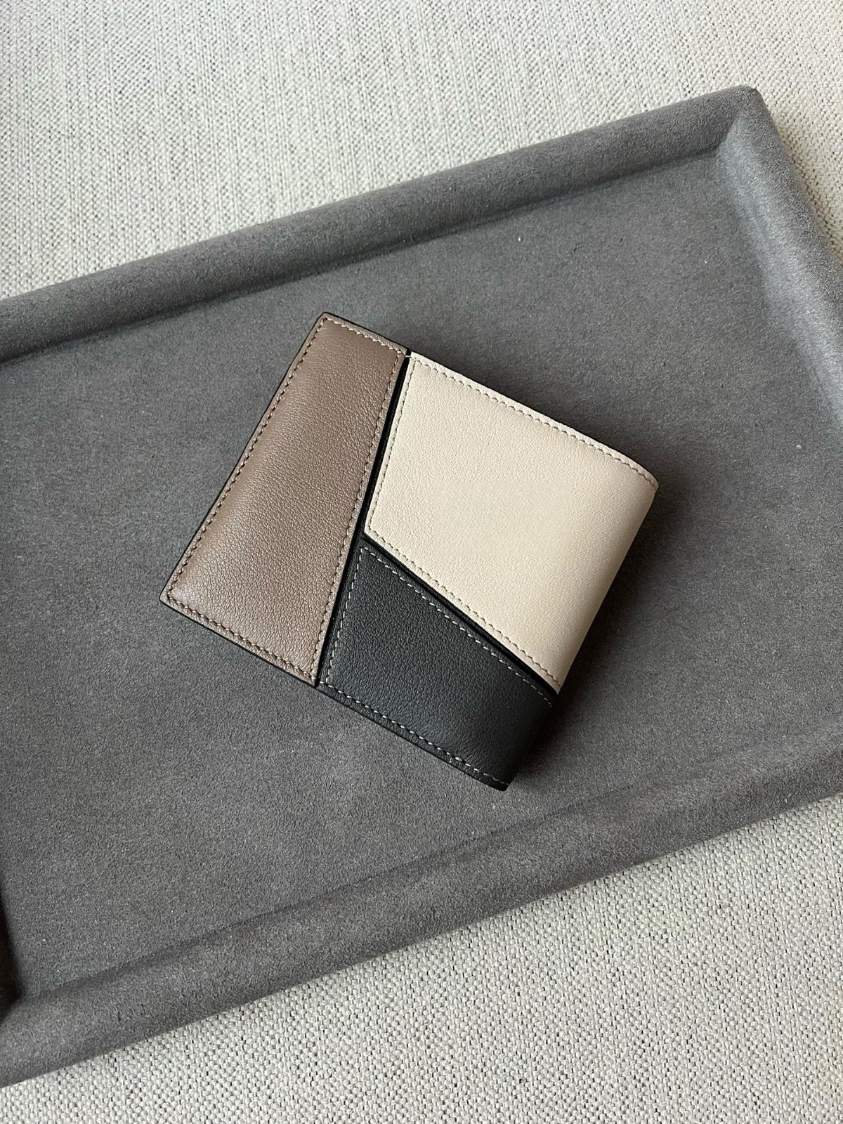 ロエベ Puzzle バイフォールド ウォレット シリーズ ツートン ショートウォレット パールグレインカーフスキンを たデザイン クレジットカード用ポケット8つとスロットポケット2つ付き