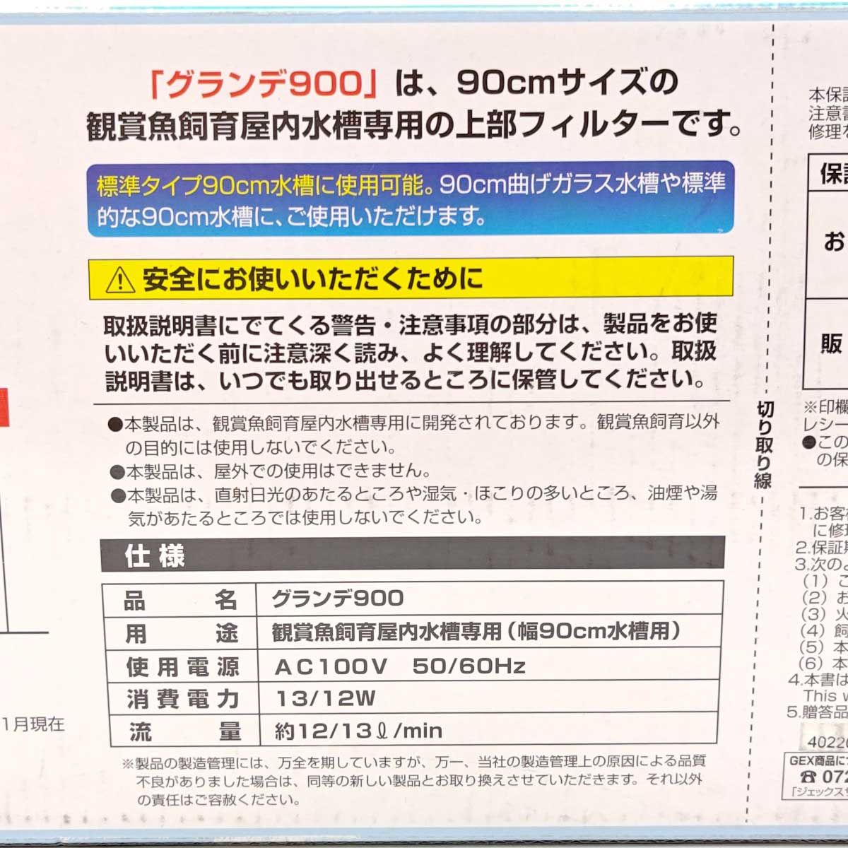 ジェックス 上部フィルター グランデ 900 90 cm水槽用 GEX 熱帯魚 水草 アクアリウム
