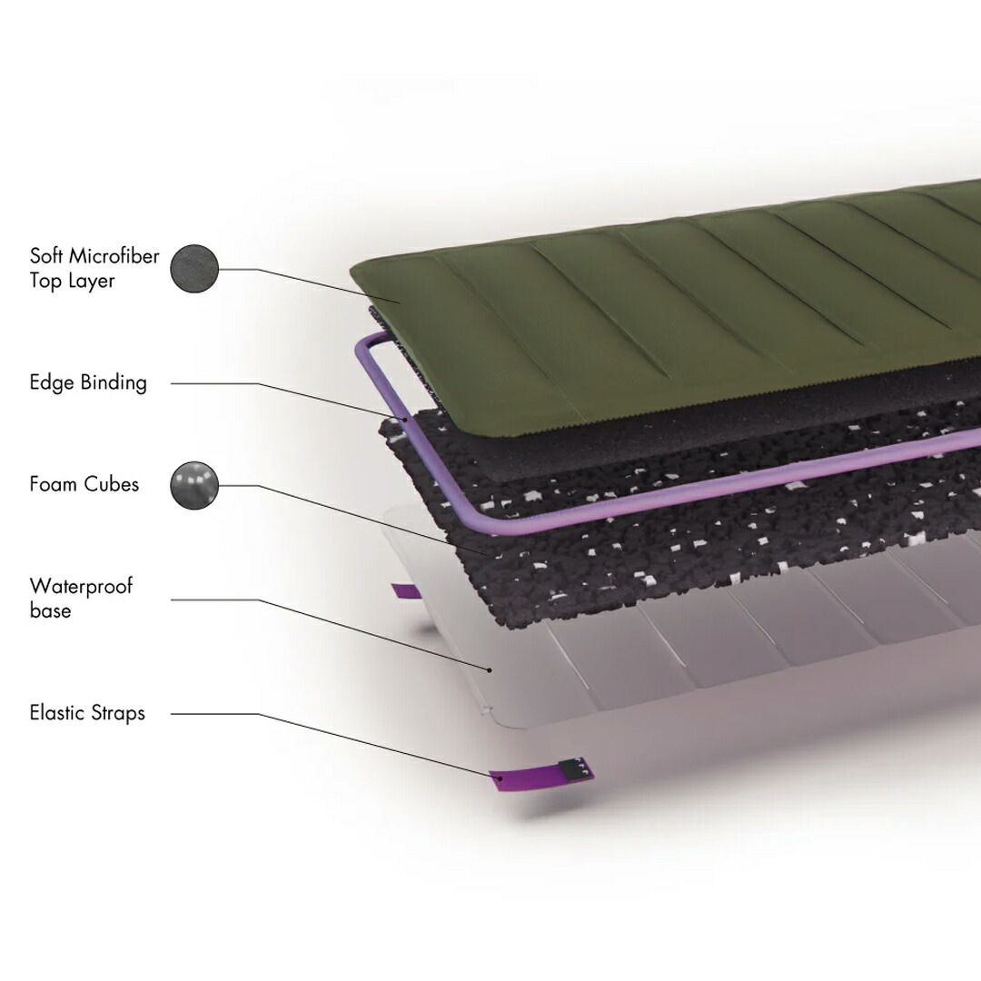 このマットをロールアップベッドとして単独で使用するのはもちろん、内蔵のフックでAIR.BED(別売)に取り付ければ、さらに快適な寝心地を体験できます。