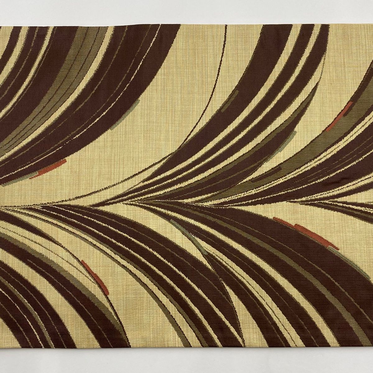 袋帯 秀品 幾何学模様 ベージュ 六通 正絹