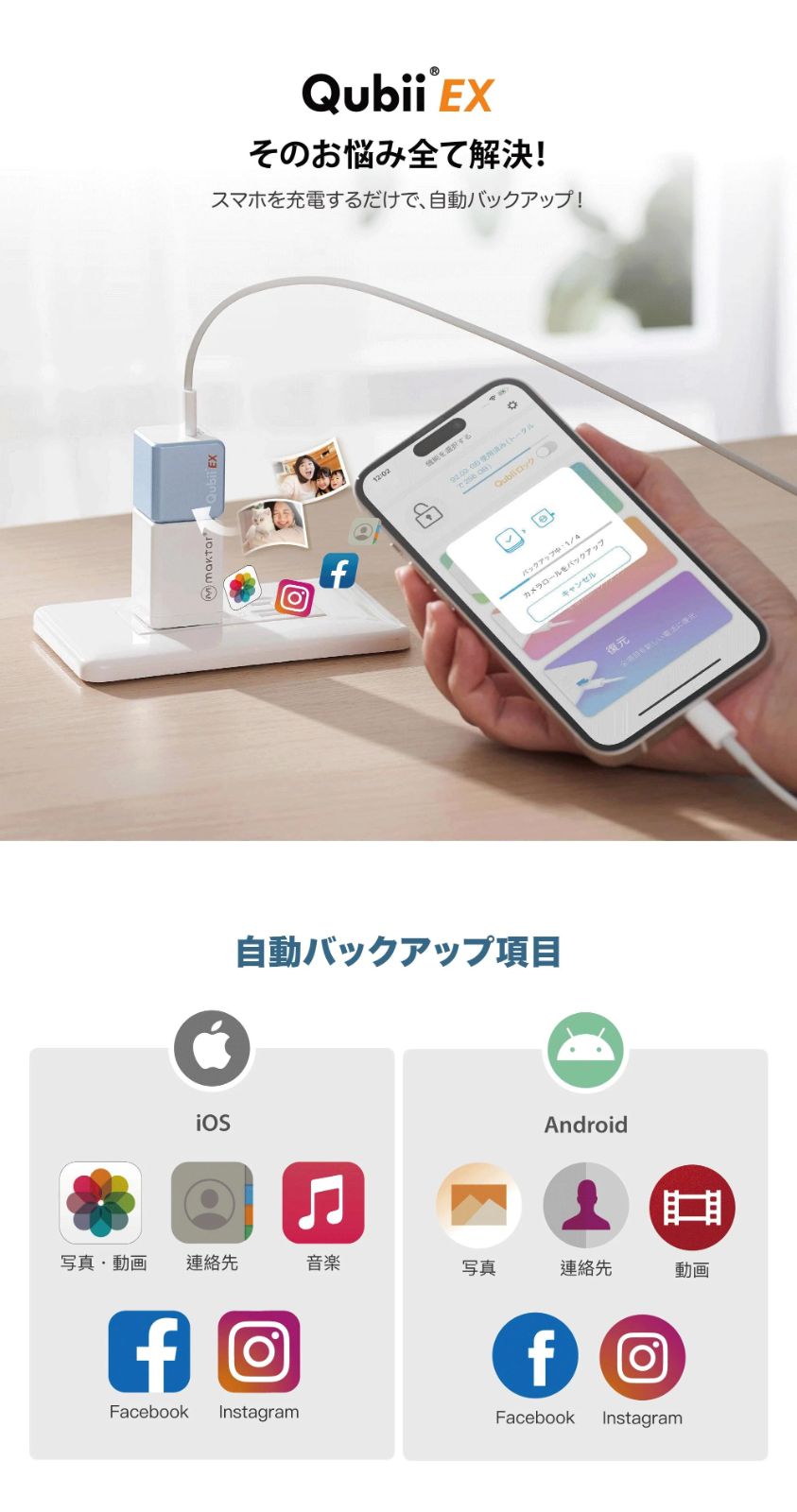 ●Qubiiと併用する充電器とケーブルはApple純正もしくはMFi認証品をご使用ください。