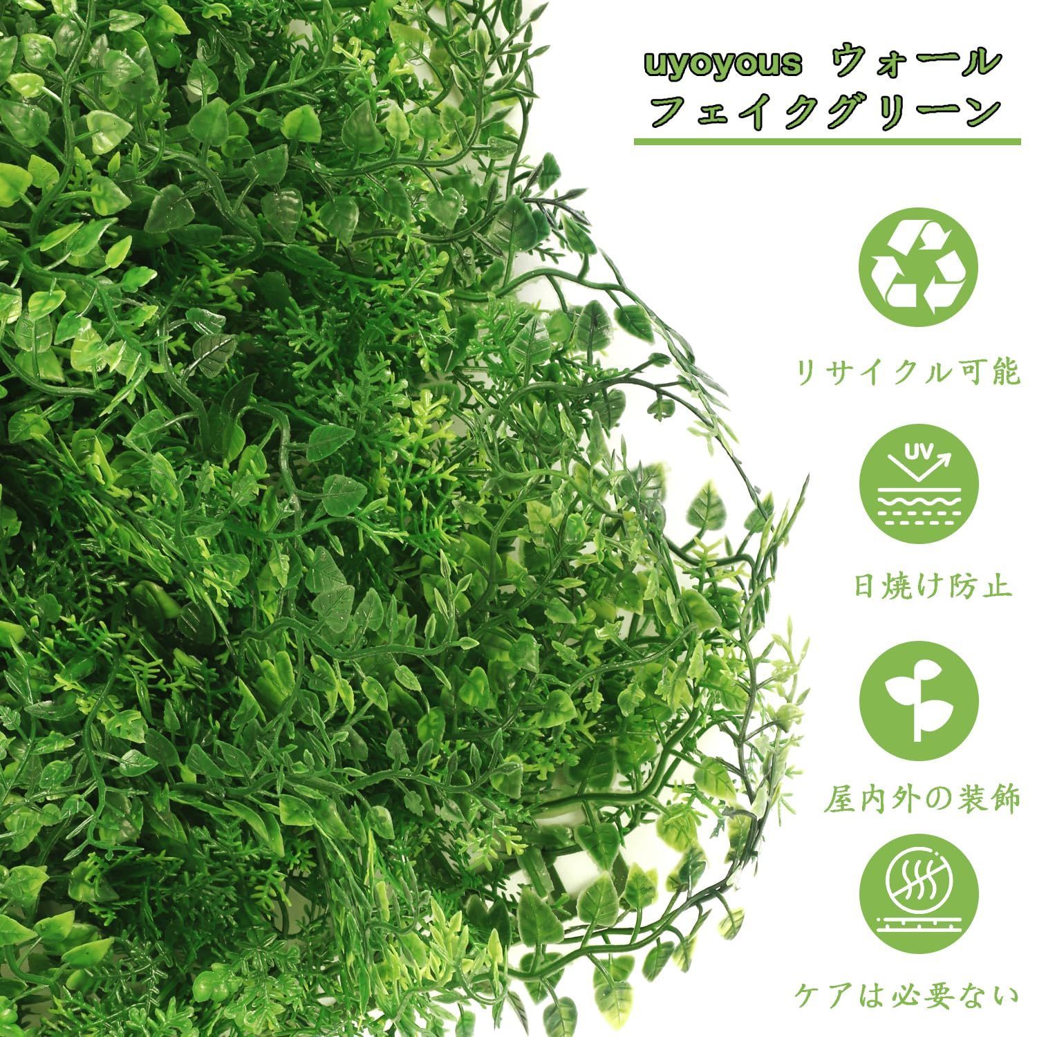 数量 uyoyous ウォール フェイクグリーン 人工植物マット 壁掛け 人工壁の芝生 ウォールグリーン 40 cm×60 cm 厚さ10 壁のデコレーション室内外兼用マット 目隠し グリーン スクリーン 人工シダ