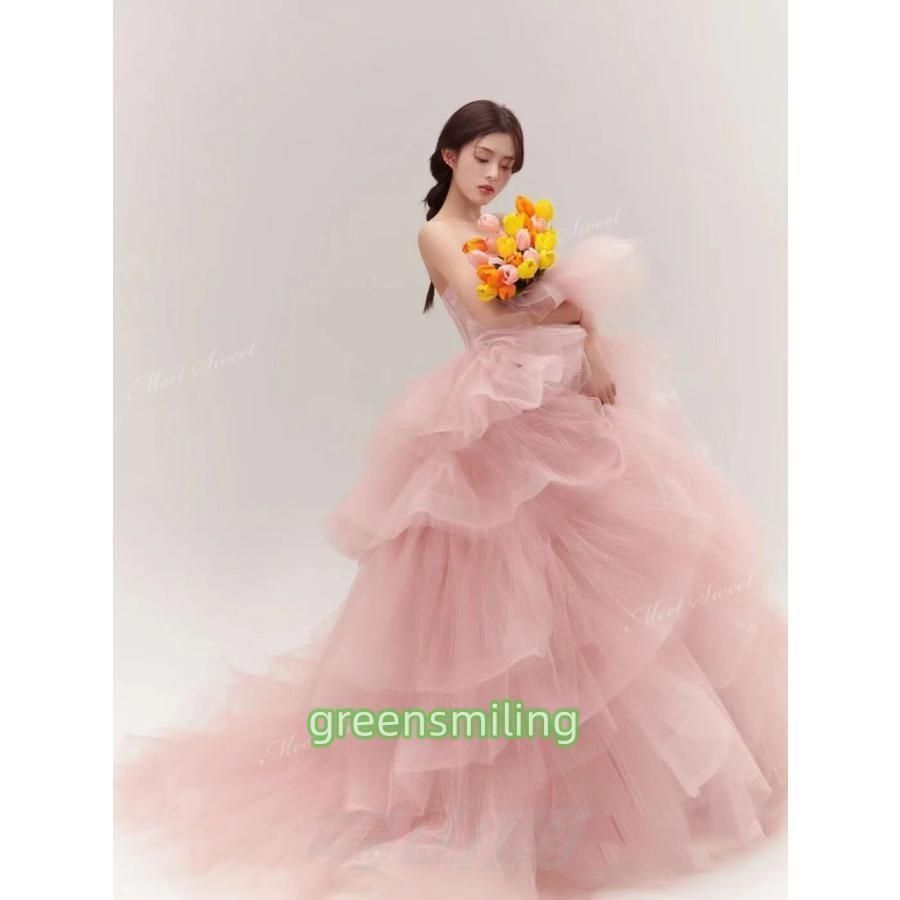 カラードレス プリンセス ピンク ライトブルー ベアトップ ウェディングドレス チュール フリル ウエディングドレス ブライダル 演奏会 結WP数量 価格926