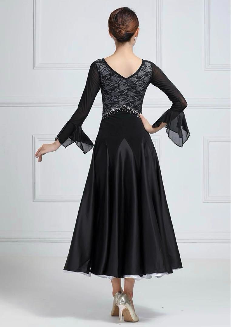 2色使いが印象的な社交ダンス用スタンダードドレスです。
