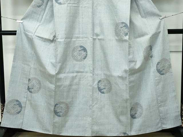 上 本場結城紬 重要無形文化財 100亀甲 花丸文 チャイナクレイ色地 証紙付き s 5