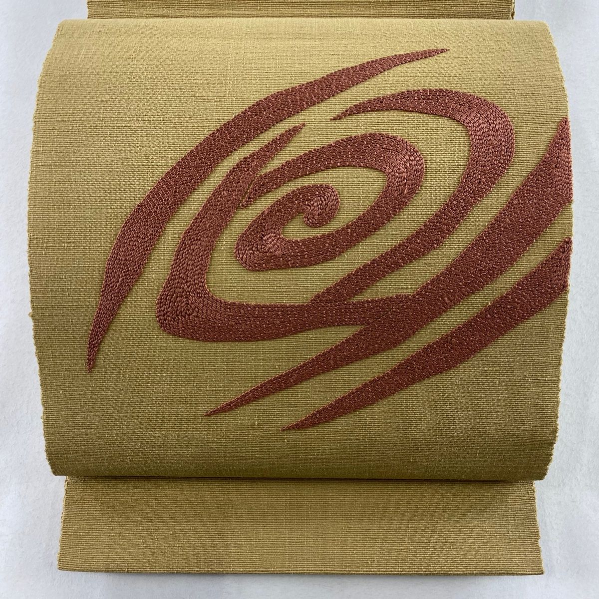 名古屋帯 松葉仕立て 八寸名古屋帯 渦巻き 刺繍 ベージュ 正絹
