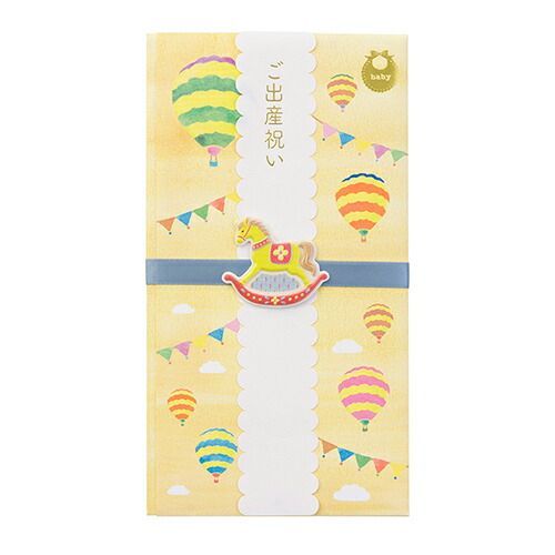 詳細情報サテンリボンに立体感のある木馬のチャームと、雲のようなオリジナルの短冊がポイントです。他にはない色合いでかわいらしい出産祝いの金封です。