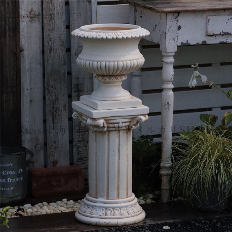 ガーデンオーナメント 庭 装飾 フラワースタンド ローマ神殿柱風 アンティーク 北欧 花台 オブジェ 屋外インテリア おしゃれ 白 ホワイト