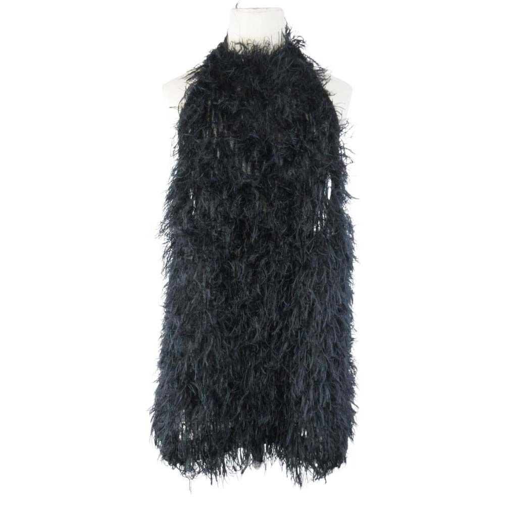 ♥ 23 aw DRIES VAN NOTEN ドリスヴァンノッテン CAFIA フェザーヤーン ホルターネック トップス 38 黒 ブラック レディース 古着