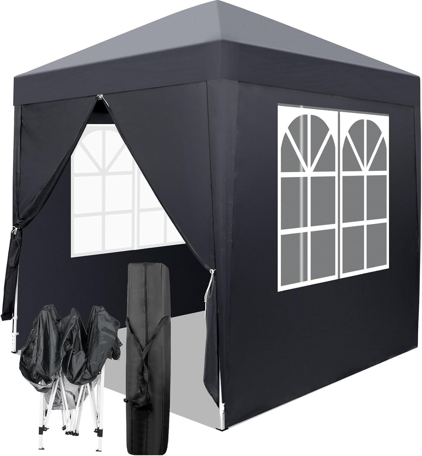 TOPAIM ワンタッチ タープテント 2 m サイドシート 付き グレー 3段階調節 イベントテント 収納バッグ付き スチール 大型 耐水