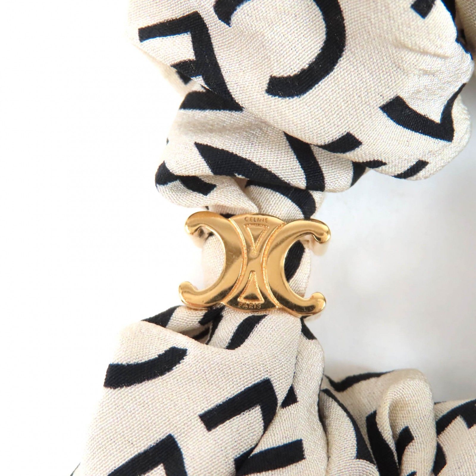 CELINE セリーヌ レイユール シュシュ シルク&ゴールドフィニッシュ ブラス シルク100% ヘアアクセサリー ゴールド ホワイト き フランス製 レディース