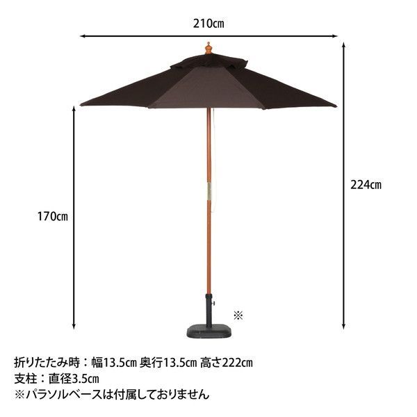 木製パラソル 210cm ブラウン 210BR