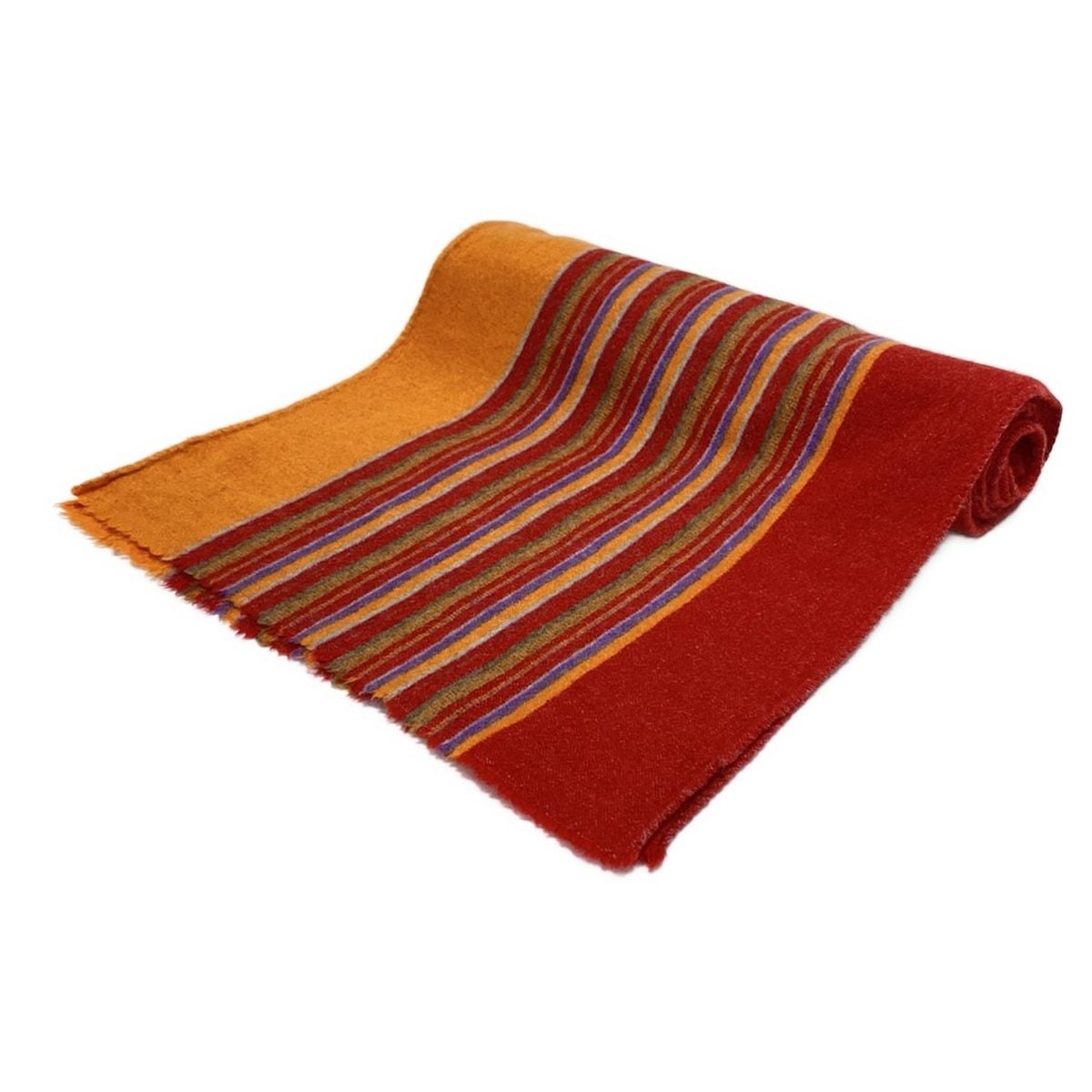 COLOMBO コロンボ マフラー - オレンジ×レッド×マルチ ボーダー ウール カシミヤ