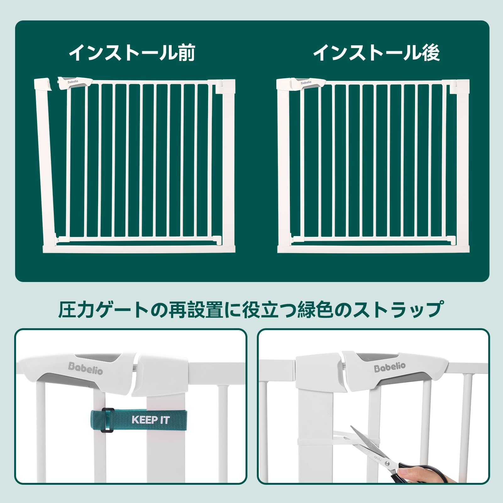 数量 階段ベビーゲート 超ワイド設置幅90-141 cm 自動閉鎖 穴あけ不要 簡単設置ペットゲート 高さ76 BABELIO