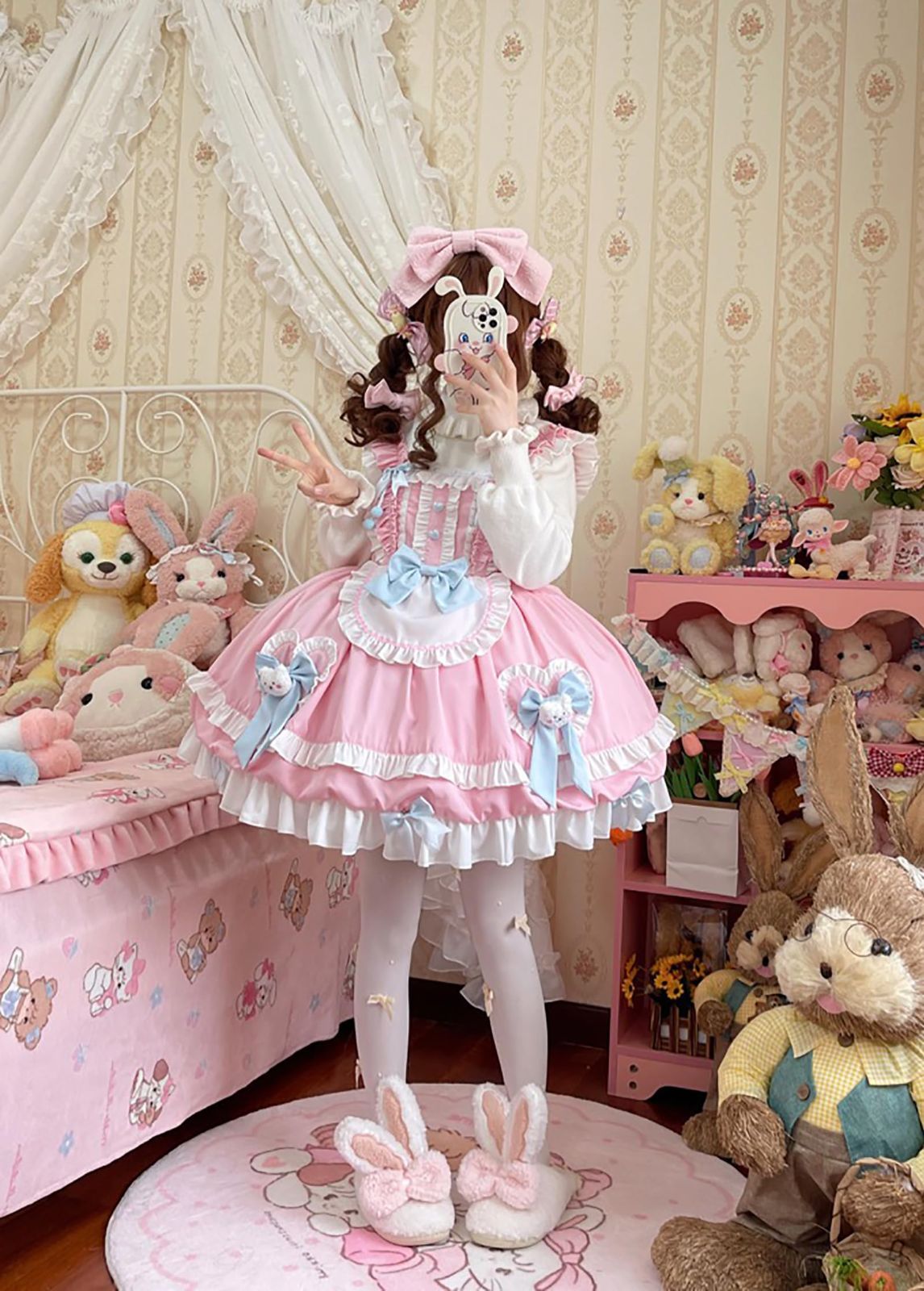 ロリータ JSK ジャンパースカート キャミソール リボン レディース ワンピース ゆめかわいい 兎 ゴスロリ ドレス 洋服