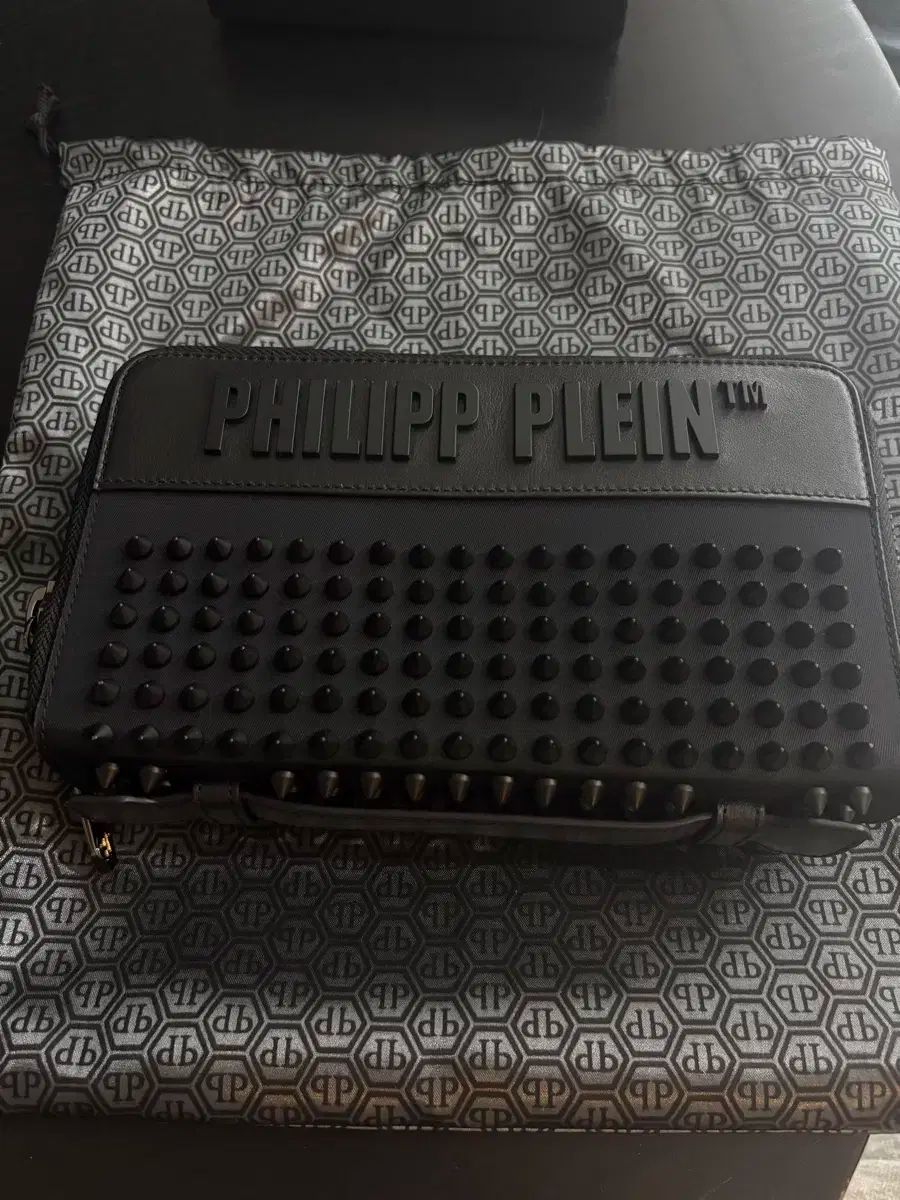 これはタグ付きのフィリッププレインのメンズクラッチです。