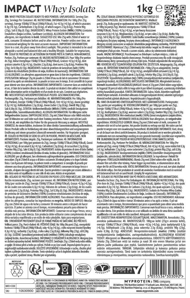 マイプロテイン ホエイ Impact ホエイプロテイン アイソレート ノンフレーバー 1 kg アンフレーバー 1キログラム x