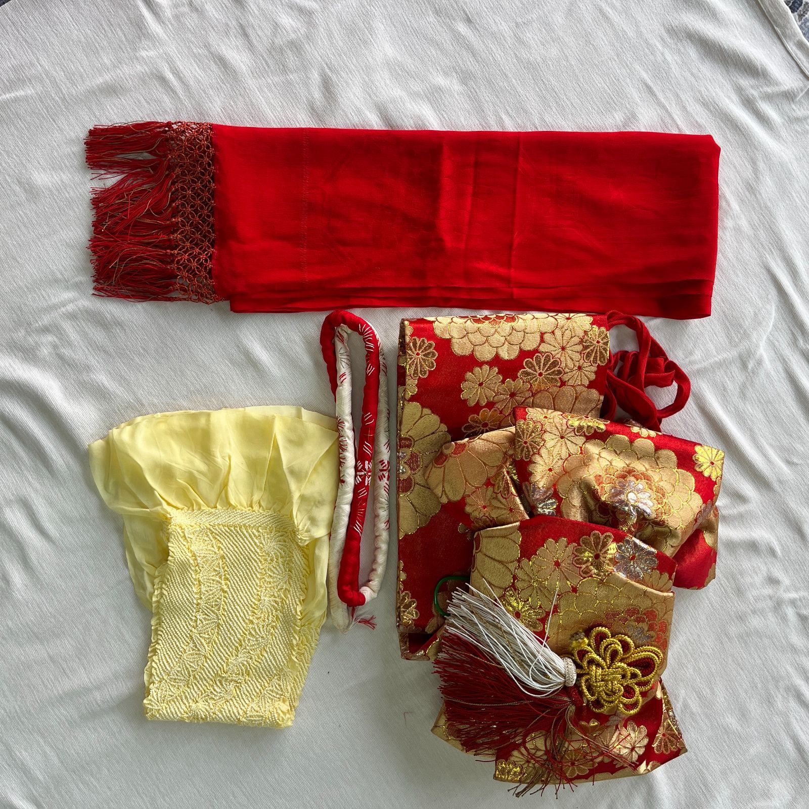 七五三 7歳女の子 セミアンティーク着物 長襦袢 帯セット 帯揚げ帯締めしごき付き きもの猫田 T 193