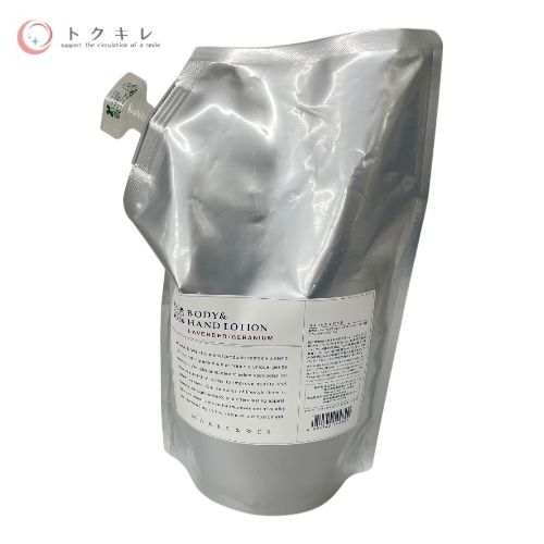 肌にやわらかさと潤いを与えるシアバターや植物由来の保湿成分を配合した全身用乳液。ラベンダーとゼラニウムのやさしい香りで、毎日のボディケアを心地よくサポートします。大容量の1000mLタイプで、家族での使用にもおすすめです。