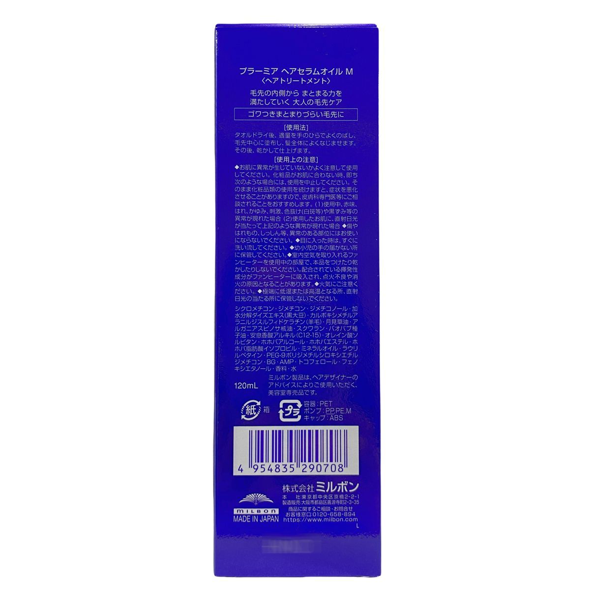 ミルボン プラーミア ヘアセラム オイル M 120 ml セット 洗い流さない トリートメント アウトバス milbon PLARMIA ヘアケア ヘアオイル ヘアエッセンス