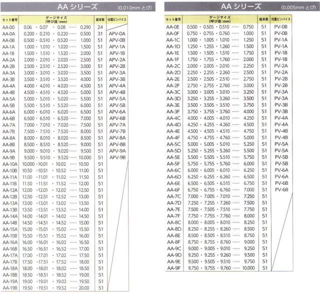 穴径などの精度確認に最もポピュラーなタイプです。1.000mm以上はピンゲージに呼び寸法を印字してあります。