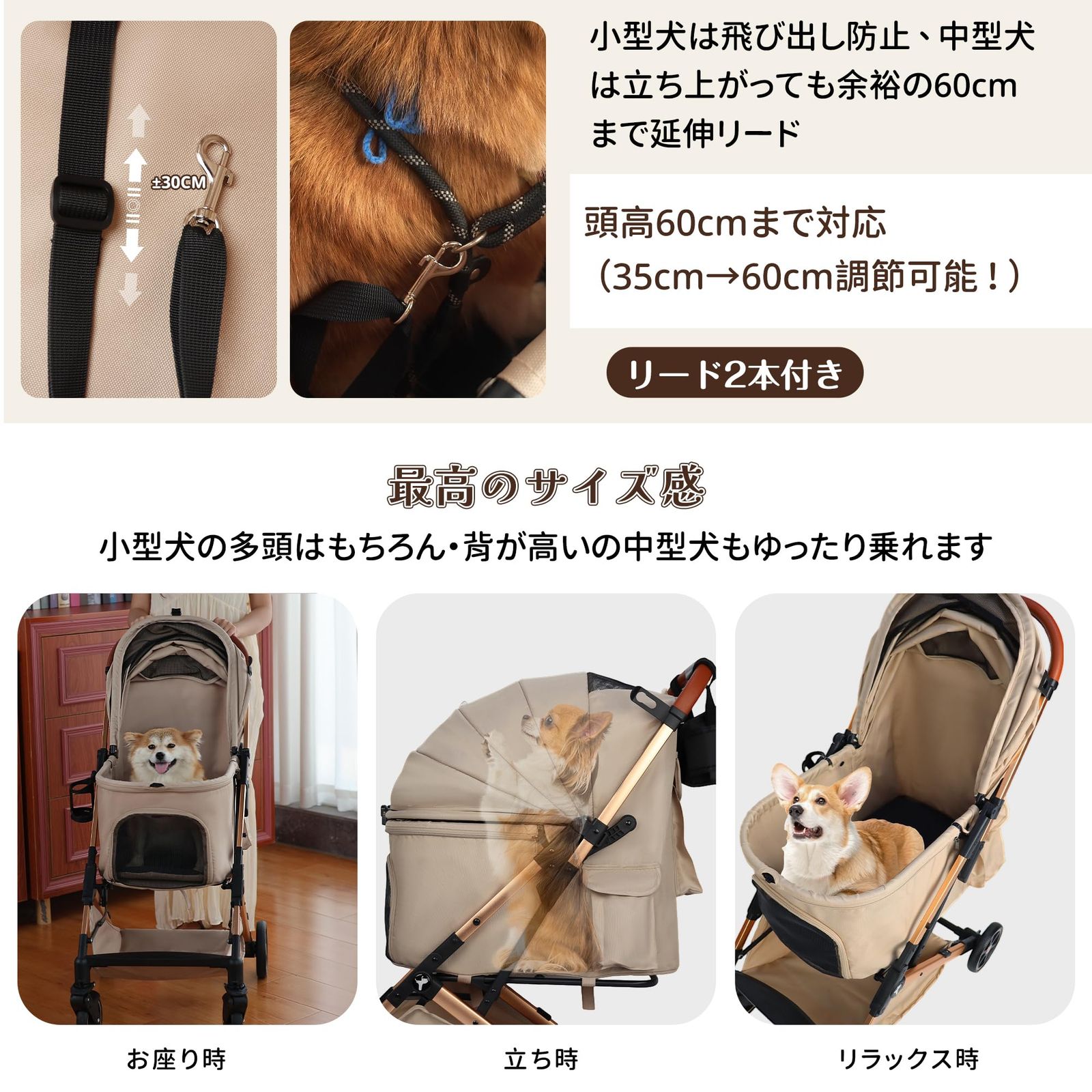 「サッと折りたたみ」Totoro ball ペットカート 犬 バギー 4輪 犬用かーと 小型犬 中型犬 多頭 ペットキャリーカート ワンタッチ折り畳み 自立式 ゴム製大口径タイヤ 一体型 ペットバギー コンパクト 犬介護用かーと 広い空間 前輪固定 軽量 タイヤ緩衝設計 通気窓 後輪ブレーキ付 飛び出し防止 通気性 組み立て簡単 耐荷重22KG 外出便利 収納バッグ付き カーキ色