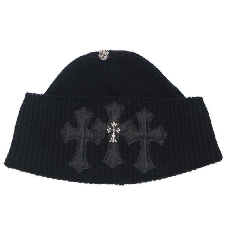 クロムハーツ BEANIE CASH レザーパッチビーニー セメタリーレザーパッチ付カシミアニット帽子 メンズ ONE SIZE