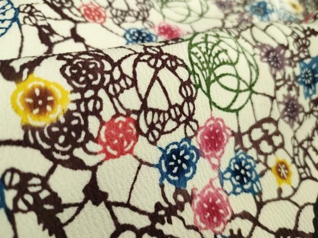 上 本場琉球紅型 小紋 花丸繋ぎ 鬼しぼ縮緬 kh 5