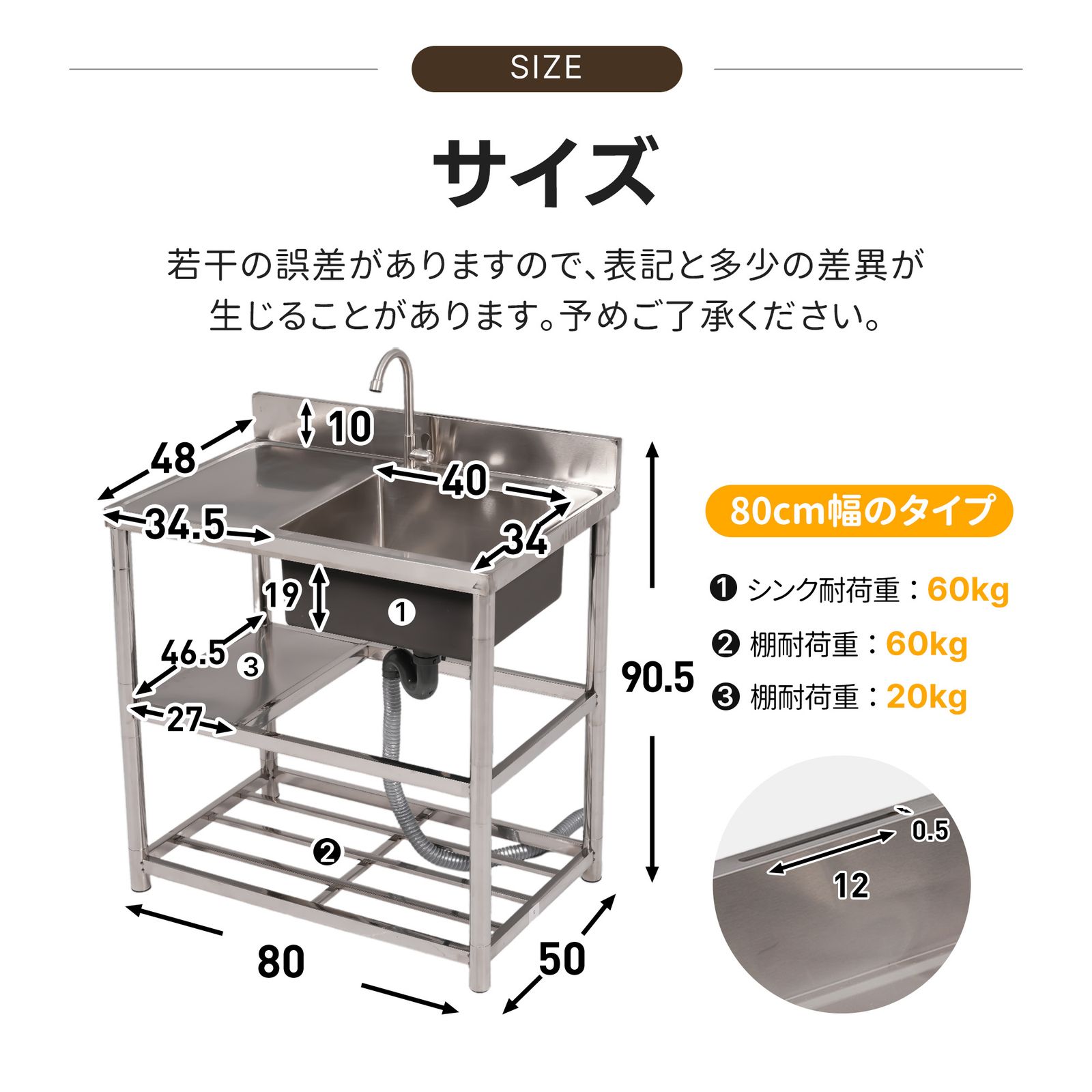幅80 cm 屋外 流し台 ステンレス ガーデンシンク 作業台 キッチン 台所 簡易 シンク 組み立て簡単 収納棚付 庭 高さ調節 調理台 ガーデニング DIY 頑丈 シルバー